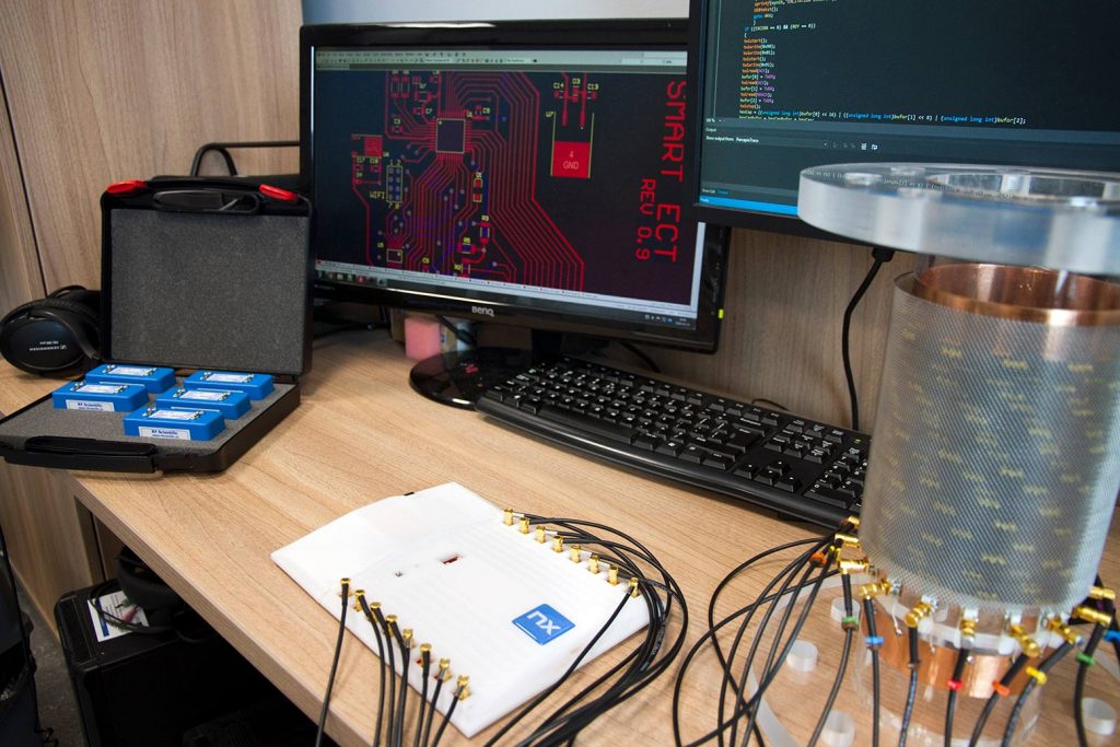 Uczestnicy mogli również podziwiać stoiska wystawców, w tym m.in. nasze tomografy procesowe i pojemnościowe. Istotnym punktem programu było także zwiedzanie laboratorium przetwarzania i użytkowania energii ze źródeł odnawialnych oraz laboratorium sterowania i informatyki przemysłowej. Dopełnieniem konferencji naukowej były warsztaty Matlab/FPGA oraz 4 sesje posterowe.